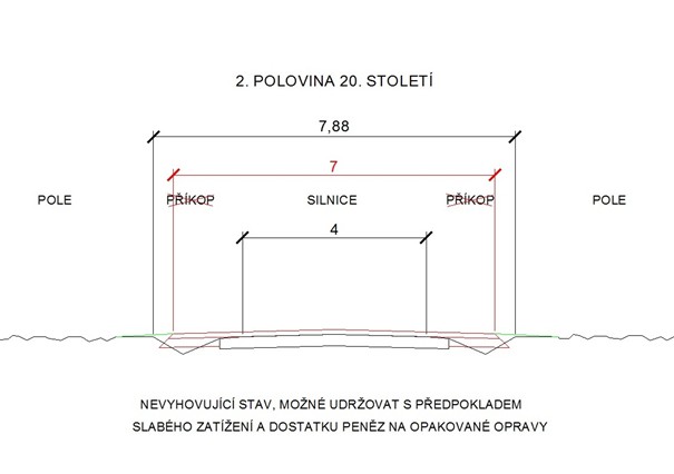 Po druhé světové válce nastalo rozšiřování původních úzkých silnic, bohužel na úkor silničních příkopů, které nebyly mnohdy nijak nahrazeny, takže přes svou nespornou technickou důležitost jednoduše zanikly:
